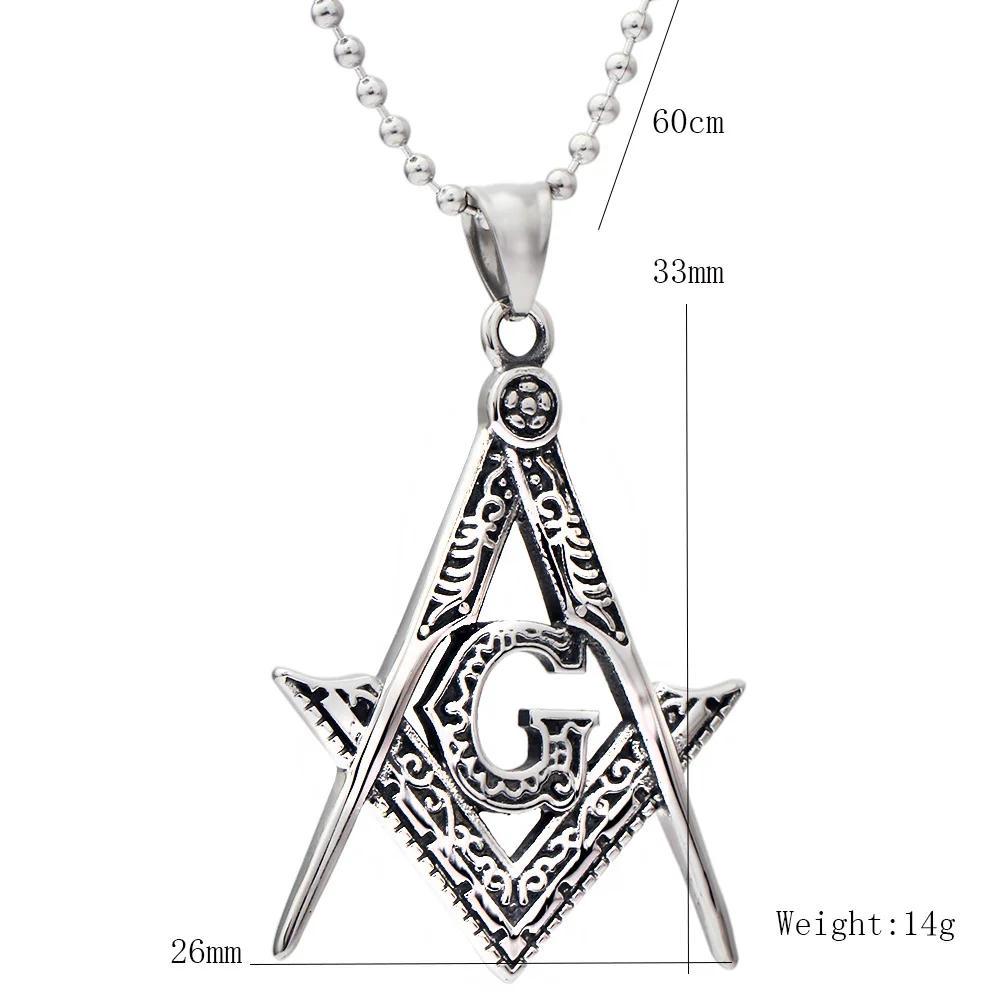 Men's Free Mason Pendant 316L Stainless Steel Freemason Masonic Pendant With Necklace