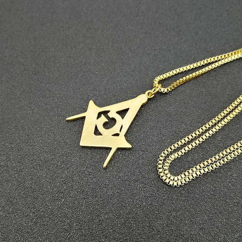 Men's Gold color Masonic Symbol Pendant Necklace 316L Stainless Steel Fashion Punk Retro Freemason Pendant