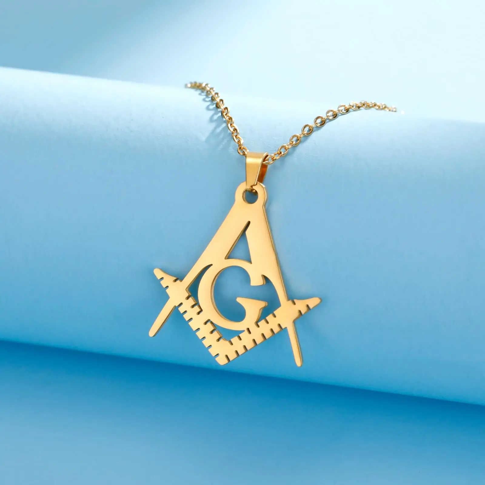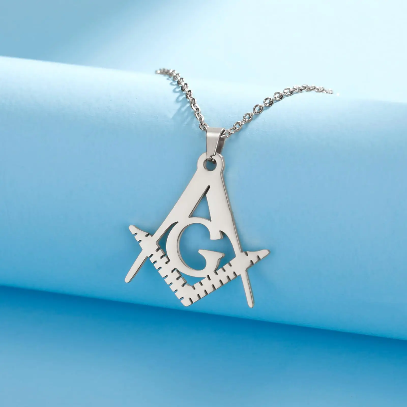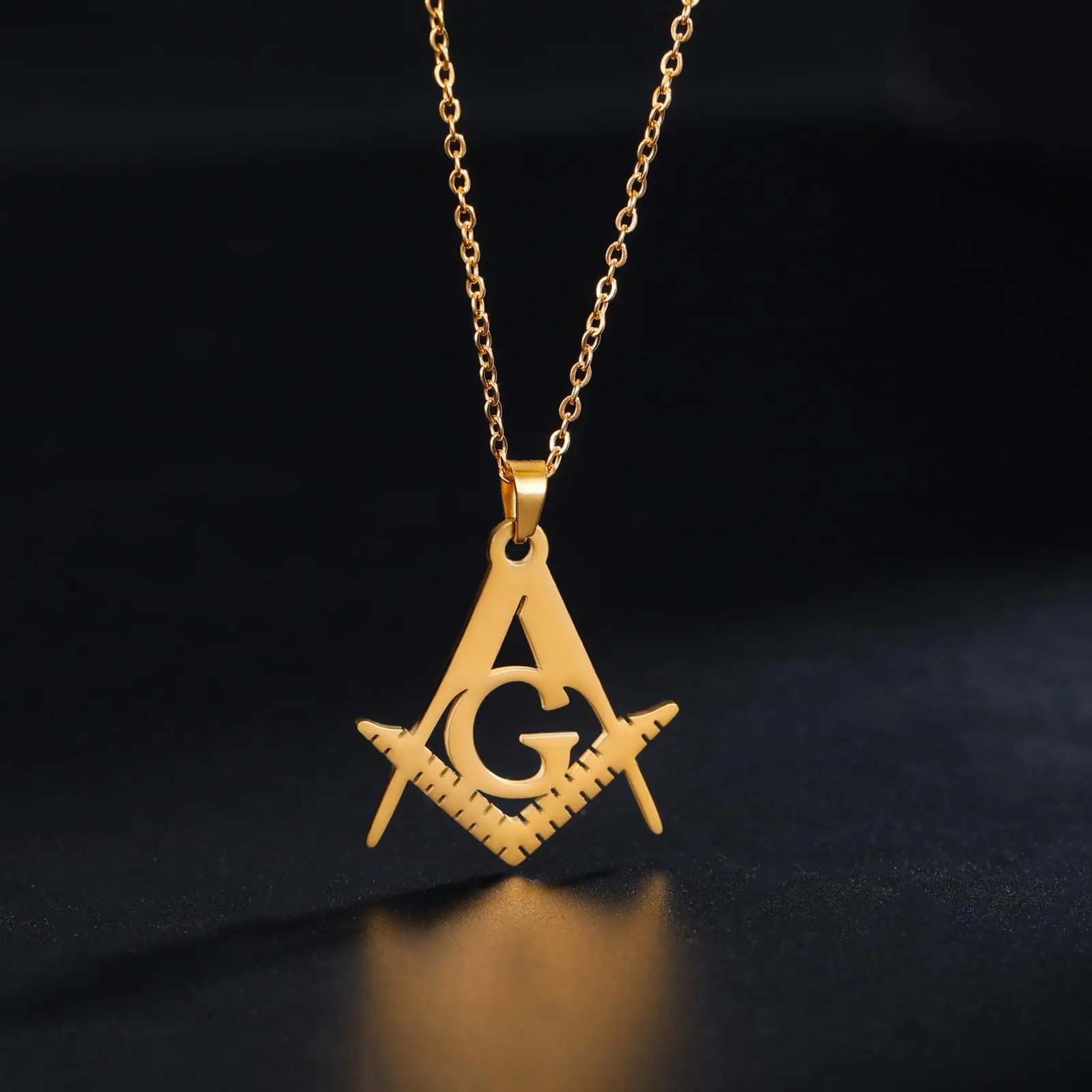 VASSAGO Masonic Necklace for Men Mason Symbol Necklace Accepted Mason Pendant Stainless Steel Jewelry