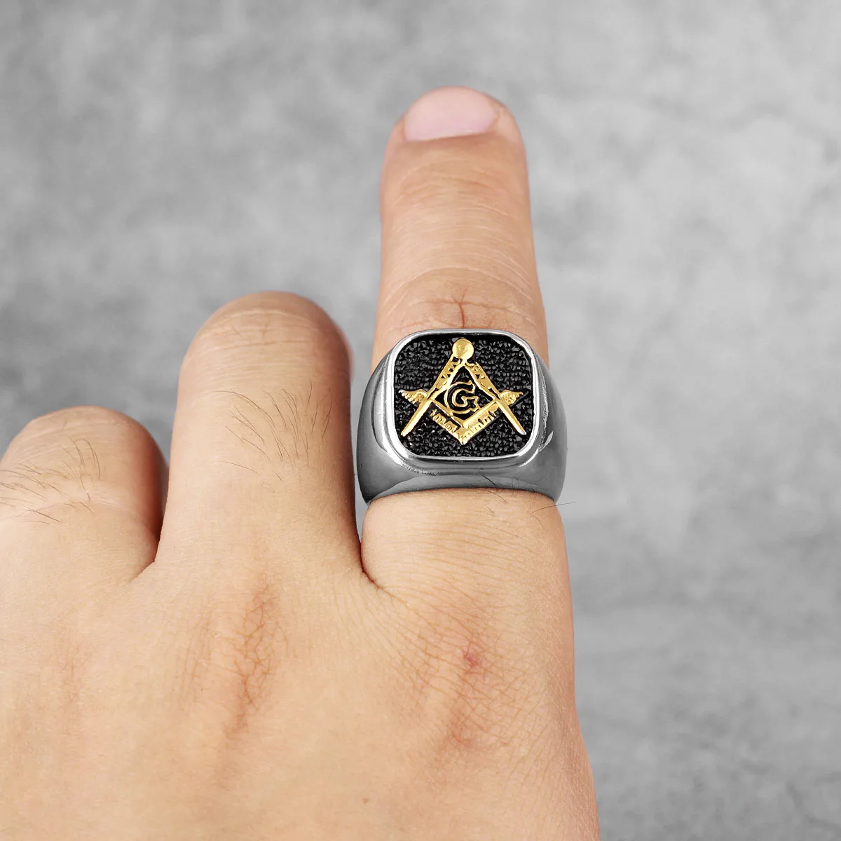 Retro Freemason Symbol Simple Charm Stainless Steel Mens Rings Masonic Templar for Male Biker Jewelry Creativity Gift Wholesale