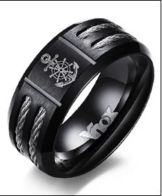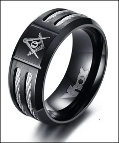 Vnox Vintage 9mm Masonic Ring Men Jewelry Black Stainless Steel With Wire Brother Gift